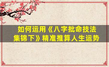 运用《八字批命技法集锦下》精准推算人生运势,需要系统性地结合命理理论、五行生克、十神配置及大运流年等要素。以下是具体步骤和方法: