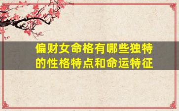 在八字命理中,"偏财"是十神之一,代表意外之财、投机性收入、社交财源、父亲(男命)或情人(女命)等。女命带有偏财格或偏财星旺盛时,往往会在性格和命运上展现出一些独特特征,以下为具体分析:
