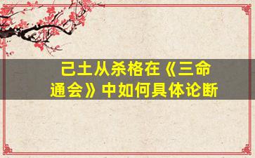 在《三命通会》中,己土从杀格作为从格的一种特殊形式,其核心在于己土日主在特定条件下完全放弃自身土性,顺从强旺的七杀(木)之气。以下是具体论断要点及分析方法: