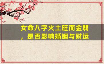 在八字命理中,女命火土旺而金弱确实可能对婚姻与财运产生影响,但需结合具体八字结构和五行生克关系综合分析。以下为关键点解析: