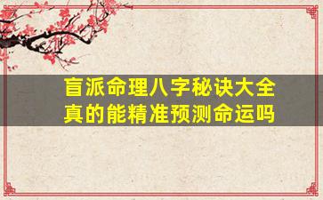 关于“盲派命理八字秘诀”是否能精准预测命运的问题,需要从多个角度理性看待: