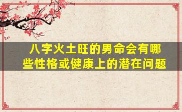 在八字命理中,火土旺的男命通常呈现出鲜明的性格特征和健康倾向,但具体表现需结合八字整体格局、五行流通及用神忌神来综合判断。以下是常见的潜在问题分析: