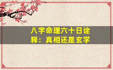 “八字命理六十日诠释”是传统命理学中的一种说法,通常指以个人出生日的天干地支(即“日柱”)为核心,结合六十甲子循环(十天干与十二地支的组合周期)来推断性格、运势等。关于其属于“真相”还是“玄学”,可以从以下几个角度分析: