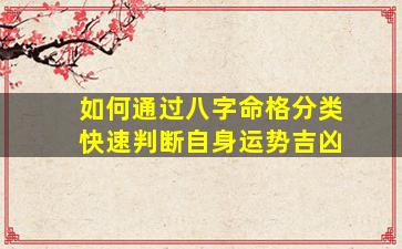 通过八字命格分类快速判断运势吉凶,需结合五行、十神、格局等核心要素综合分析。以下是简明步骤和逻辑框架: