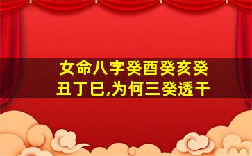 在八字命理中,天干同时出现三个相同的字(如三癸透干),称为“天干三朋”或“三透”格局。这种配置的形成与八字排盘规则、五行生克以及命主的出生时间密切相关。以下针对您提供的女命八字 癸酉 癸亥 癸丑 丁巳,分析三癸透干的原因及命理含义:
