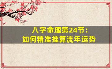 在八字命理中,流年运势的推算需要结合命局、大运、流年三者的互动关系,通过五行生克、十神作用以及神煞等因素综合分析。以下是精准推算流年运势的关键步骤:
