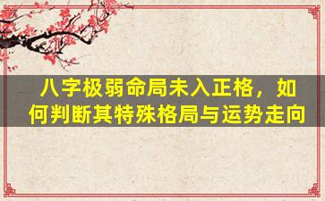 在八字命理中,若命局“极弱且未入正格”,通常意味着日主五行力量极衰,难以胜任财官食伤等克泄耗的五行压力,但又不符合传统的“从格”(如从财、从杀等)标准。此时需通过以下步骤判断特殊格局与运势走向: