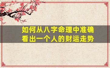从八字命理中分析一个人的财运走势,需结合命局结构、五行生克、十神配置以及大运流年的互动关系。以下是系统性的分析方法,供参考: