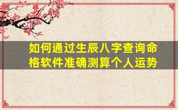 通过生辰八字查询命格软件测算个人运势,是一种结合传统命理学与现代技术的尝试。以下为您提供系统化的方法和注意事项,帮助您更准确地获取和分析结果: