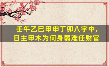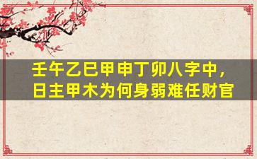 在八字命理中,日主甲木的强弱取决于其得令、得地、得势的综合判断。根据您提供的八字 壬午 乙巳 甲申 丁卯,我们可以从以下几个方面分析甲木为何身弱难任财官: