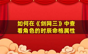 在《剑网三》(剑侠情缘网络版叁)中,查看角色的“时辰命格”属性(即生辰八字对应的命格)可以按照以下步骤操作: