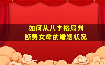 从八字格局判断男女命的婚姻状况,是传统命理学中的重要内容,主要通过对日柱、配偶宫、十神组合以及五行生克的分析来推断。以下是具体方法和常见格局: