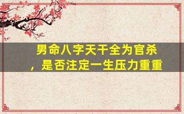 在八字命理中,天干全为官杀(正官、七杀)确实可能带来一定的压力,但并不能单一地断定“一生压力重重”。八字分析需结合整体格局、五行平衡、地支藏干、用神喜忌等综合判断,以下是具体解析: