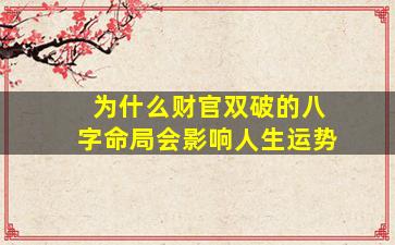 在八字命理中,“财官双破”是一种被视为不吉利的命局配置,通常被认为会对人生运势(如财富、事业、社会地位等)产生负面影响。这种判断源于八字理论中“财”与“官”的象征意义及其与命局平衡的关系。以下是具体解析: