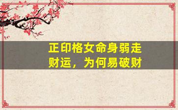 在八字命理中,“正印格女命身弱走财运易破财”的现象,可以从以下几个角度深入分析: