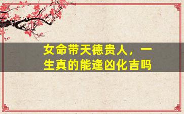 关于“女命带天德贵人,一生能否逢凶化吉”的问题,需要从命理学的理论框架和现实角度综合分析: