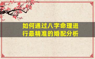 通过八字命理进行精准的婚配分析(又称“合婚”),需结合双方生辰八字的五行生克、十神互补、神煞吉凶等多维度因素综合判断。以下是系统的步骤和方法: