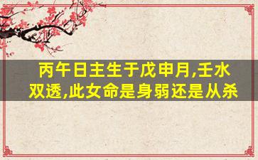 是否“真从”:因午火根气存在,且戊土制杀,无法真从杀,需按“身弱杀旺”论。