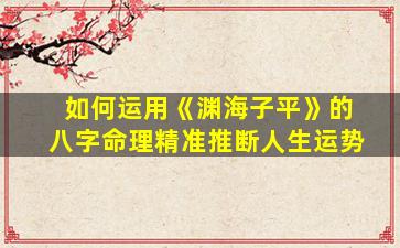 运用《渊海子平》的八字命理推断人生运势,需结合其核心理论体系(如五行生克、十神格局、神煞等),通过严谨的逻辑推演和实践验证。以下是系统化的步骤与方法: