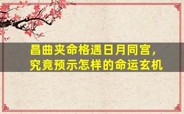 在紫微斗数中,“昌曲夹命格遇日月同宫”是一种较为特殊的命理组合,其命运预示需结合星曜性质、宫位关系及四化飞星等综合分析。以下是关键解读: