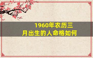 根据中国传统命理学(八字、五行等),1960年农历三月出生的人命格需结合具体出生日期和时辰推算,但可基于年份和月份提供一些共性分析,仅供参考: