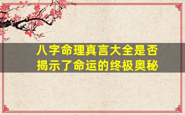 关于“八字命理真言大全是否揭示了命运的终极奥秘”,可以从以下几个角度理性看待: