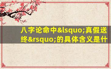 真送终:命局中父母星或宫位受克严重,且无解救,预示父母可能早逝或命主需亲身承担送终责任。