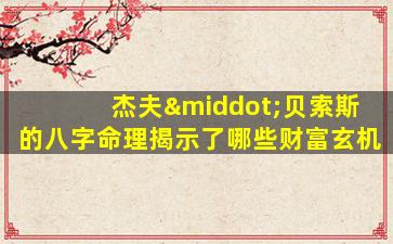 关于杰夫·贝索斯(Jeff Bezos)的八字命理分析,需先明确几点前提: