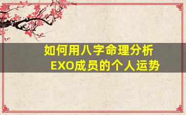 用八字命理分析EXO成员的个人运势需要结合他们的出生日期、时间和地点(需具体到小时,若时间未知可默认子时),通过排盘推算四柱八字、五行强弱、十神关系等。以下是具体步骤和注意事项: