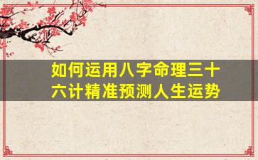 运用八字命理与三十六计结合预测人生运势,是一种将传统命理学与策略智慧融合的尝试。这种方法并非机械套用,而是通过分析命局特点,结合三十六计的策略思维,提供更具指导性的建议。以下是具体步骤和逻辑框架: