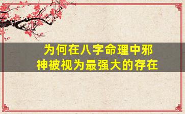 在传统八字命理(四柱预测学)中,并没有“邪神”这一明确概念,但命理学中确实存在一些特殊的神煞或五行力量,可能被民间或部分流派赋予“强大”甚至“凶险”的特性。以下从命理学逻辑和文化背景角度,对这一问题的可能解释进行分析: