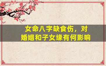 在八字命理中,食伤(食神和伤官)代表女性的子女、才华、情绪表达等。女命八字缺食伤(即天干地支中食神、伤官元素较弱或缺失),可能对婚姻和子女缘产生以下影响: