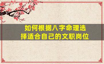 根据八字命理选择适合的文职岗位,需结合命局中的五行喜忌、十神组合及格局特点,综合分析个人天赋与职业适配性。以下是具体步骤和建议: