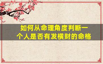 从传统命理学(如八字、紫微斗数等)的角度判断一个人是否有发横财的命格,需要结合命局中的特殊组合和五行生克关系来分析。以下是常见的判断思路和方法: